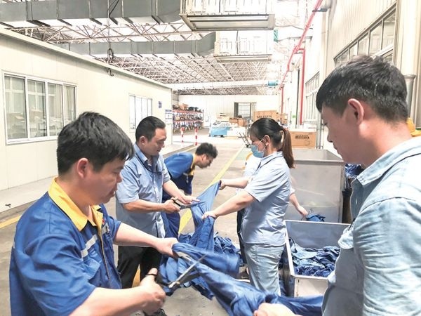 8 月23 日中午,从五金仓库传来“咔嚓咔嚓”的剪刀声,清脆且有力,原来是中青班(二期)学员在开展为期两周的义务劳动——回丝处理。