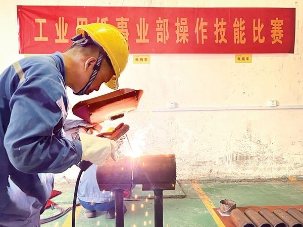 5 月25 日,工业用纸事业部“焊接作业技能比赛”拉开序幕。经过各产线内部积极选拔,最终共有8 名焊工进入决赛。比赛开始前,工业用纸设备部经理助理徐全忠宣读“管对接焊接”比赛规则,要求各参赛选手在规定的时间内,按照要求完成全部焊接内容。评委组根据焊疤的尺寸、质量、外观及用时等综合评比。经过激烈角逐,最终造纸二厂PM13 王慧根、造纸一厂PM10金嘉平、环保办高道法分别获得比赛前三名。