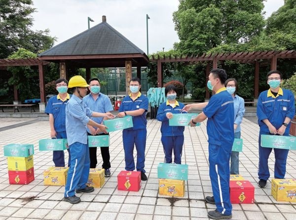 近日,获得2021 年度精益大奖的5 个TPM 小组在各负责人的组织和精心准备下,先后开展一系列公益慰问活动,如造纸一部精益队准备水果、牛奶等,来到工伤员工的家中慰问,并叮嘱他安心养伤,争取早日康复,重返工作岗位。再如,品管部齐心队和设备保全绑扎组准备一箱箱饮料、“品萱”纸巾礼盒等分别来到公司所在的核酸检测点,慰问公司的抗疫志愿者和进口物资核酸检测人员。当防疫工作者和志愿者们收到这些爱心满满的物资后,脸上洋溢着幸福的笑容,心里充满温暖。他们表示,作为公司的一份子,每个人都应尽己所能,众志成城,这也是我们当下最真实的写照。孩子是祖国的未来,造纸二厂PM13 梦想队带着书包、文具等学习用品来到曹桥行知幼儿园,慰问学校里的孩子们。虽然这些东西并不那么贵重,但是给孩子们送温暖不仅仅是为了带去一些物质上的帮助,更重要的是让爱心点亮幸福童年,给孩子们传递一种帮助他人、关爱弱者、奉献社会的精神。夏季到来,骄阳似火,酷暑难耐,但是依然有许多一线员工坚守岗位,为改善现场环境默默付出。造纸一厂PM16 恒山队带着饮料、毛巾等防暑降温物品,为物流公司清理组送去清凉,在送去关怀的同时,也极大地鼓舞清理组员工们的士气。