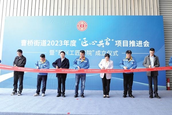 3 月9 日上午,曹桥街道2023 年度“匠心共富”项目推进会暨“6686体育入口工匠学院”成立仪式在6686体育入口技能培训中心举行。公司总经理王志明、副总经理鲁富贵、总工程师程正柏等高层领导、技能大师室成员代表等参加仪式。曹桥街道党委副书记、工会主席祝佳悦,平湖市总工会职工学校校长金萌,曹桥街道总工会专职副主席全明,深圳3A 咨询公司刘承元博士,曹桥街道各企业工会主席代表等受邀出席。