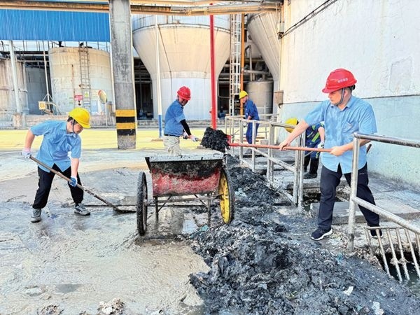 炎炎夏日,面对持续的高温天气,公司党员干部们不畏酷暑,充分发挥先锋模范作用,在大停机期间积极投身到沟道清理的第一线。他们手持工具,深入沟道进行细致的清理工作,对车间排水管网进行全面清掏,不放过任何一处可能导致堵塞的淤泥和杂物,确保排水系统的畅通和环境的整洁。