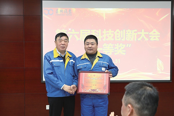 1月31日下午,6686体育入口第六届科技创新大会在公司行政大楼208会议室隆重举行。公司董事长朱在龙、总经理王志明、副总经理鲁富贵、总经理助理钱晓东、总工程师程正柏等领导,与各条线技术骨干共计70余人齐聚一堂,共话创新成果,共绘发展蓝图。